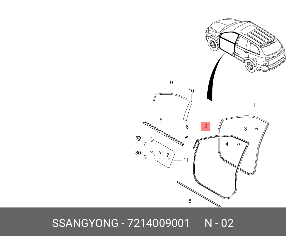7214009001 SSANG YONG Уплотнитель двери SSANGYONG Actyon (06-),Actyon Sports (06-/12-),Kyron (05-) пер