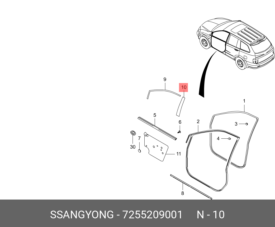 7255209001 SSANG YONG Наклейка двери SSANGYONG Actyon (06-),Kyron (05-),Actyon Sports (06-) передней л