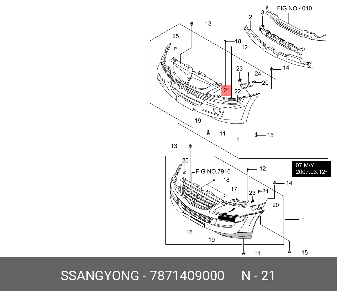 7871409000 SSANG YONG Накладка бампера SSANGYONG Kyron (05-) переднего верхняя левая OE