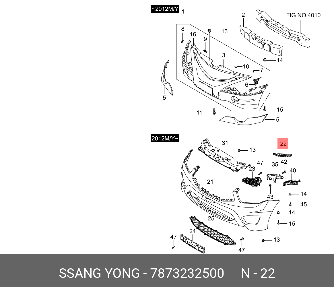 7873232500 SSANG YONG Кронштейн бампера SSANGYONG Actyon Sport (12-) переднего верхний правый OE