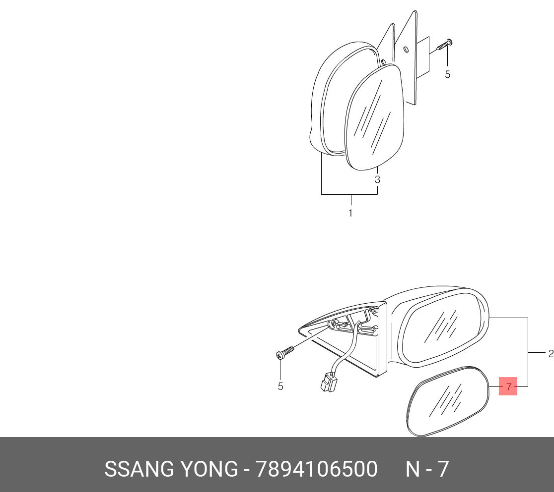 7894106500 SSANG YONG Элемент зеркальный SSANGYONG Korando (01-) правый с подогревом OE