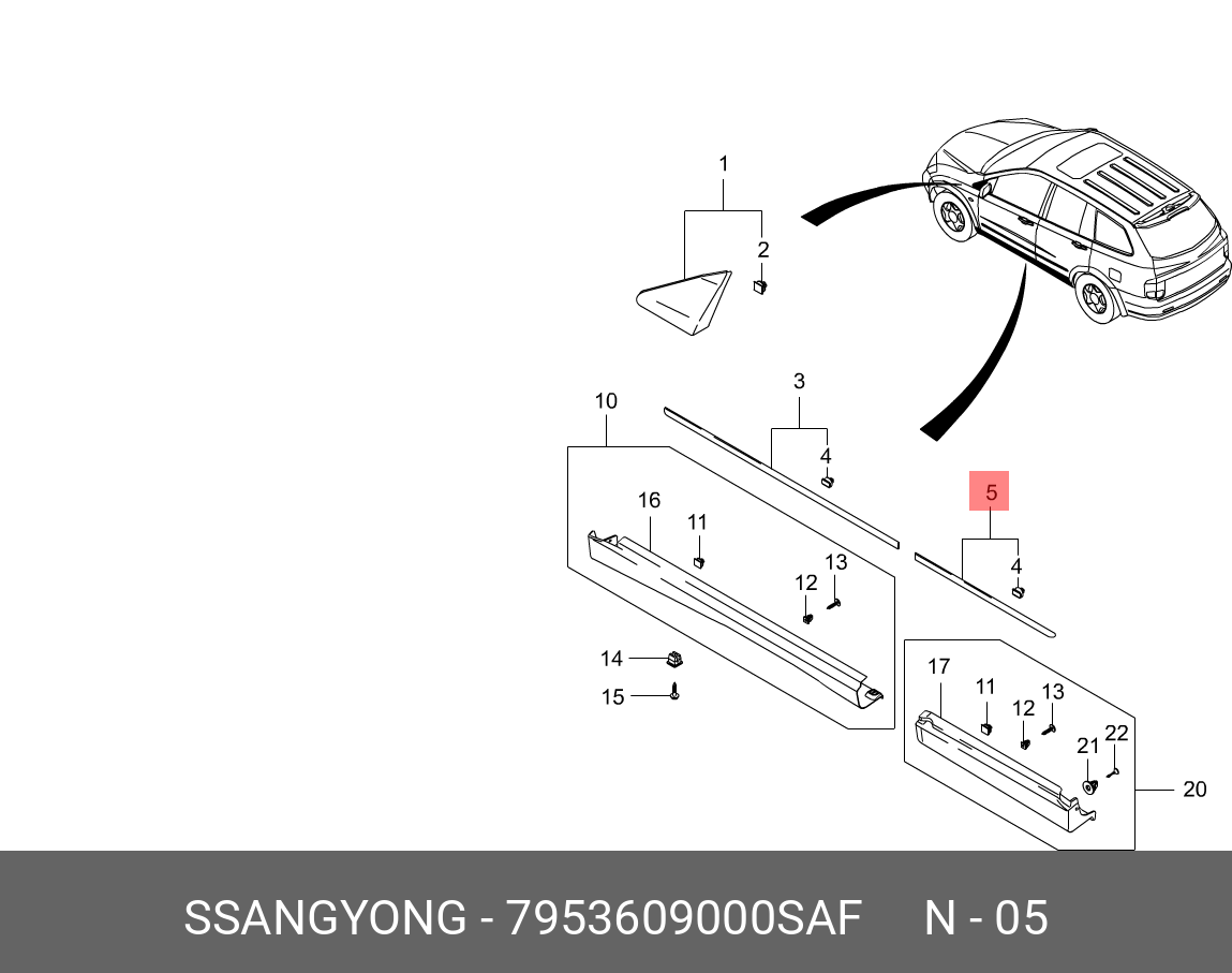 7953609000SAF SSANG YONG Молдинг SSANGYONG Kyron (05-) двери задней левой (серебристый) OE