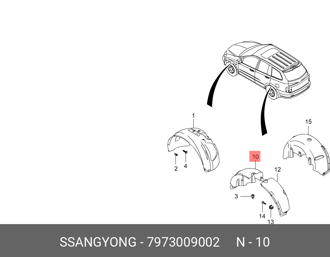 7973009002 SSANG YONG Подкрылок SSANGYONG Kyron (05-) задний левый передняя часть OE