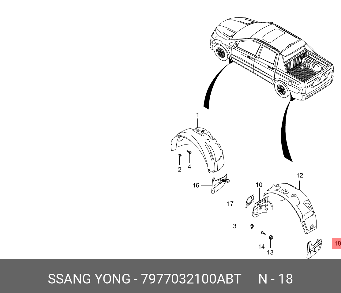 7977032100ABT SSANG YONG Брызговик SSANGYONG Actyon Sport (12-) задний левый OE