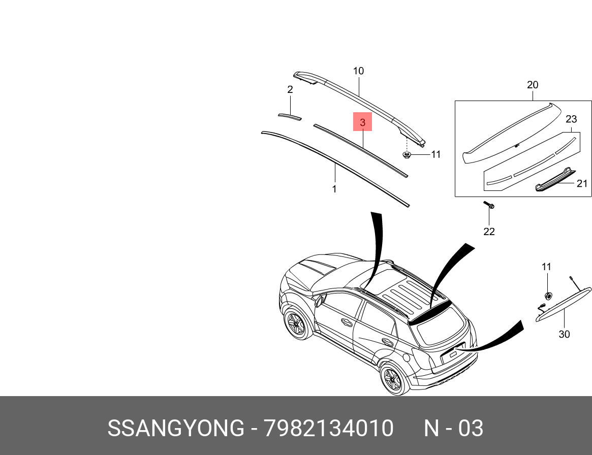 7982134010 SSANG YONG 7982134010 Молдинг крыши задний (лев.) НЛК