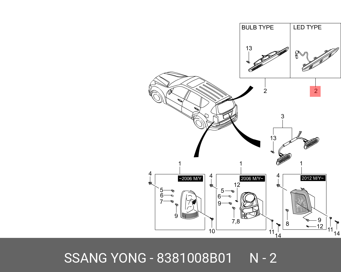 8381008B01 SSANG YONG Фонарь задний SSANGYONG Rexton (06-) дополнительный стоп-сигнала OE