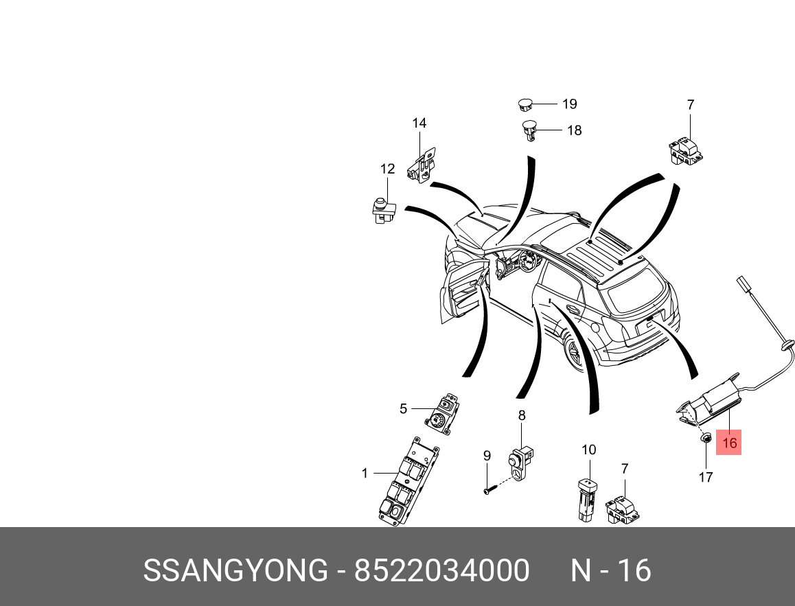 8522034000 SSANG YONG Кнопка SSANGYONG Actyon (10-) открывания двери задка OE
