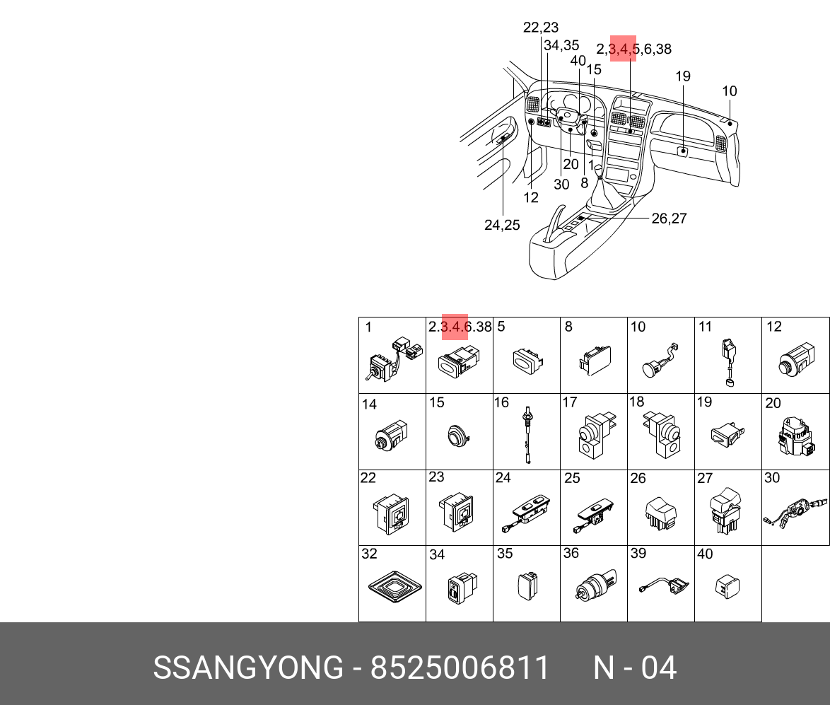 | Наименование | Выключатель кнопка SSANGYONG Korando (96-) фонаря противотуманного заднего OE |
