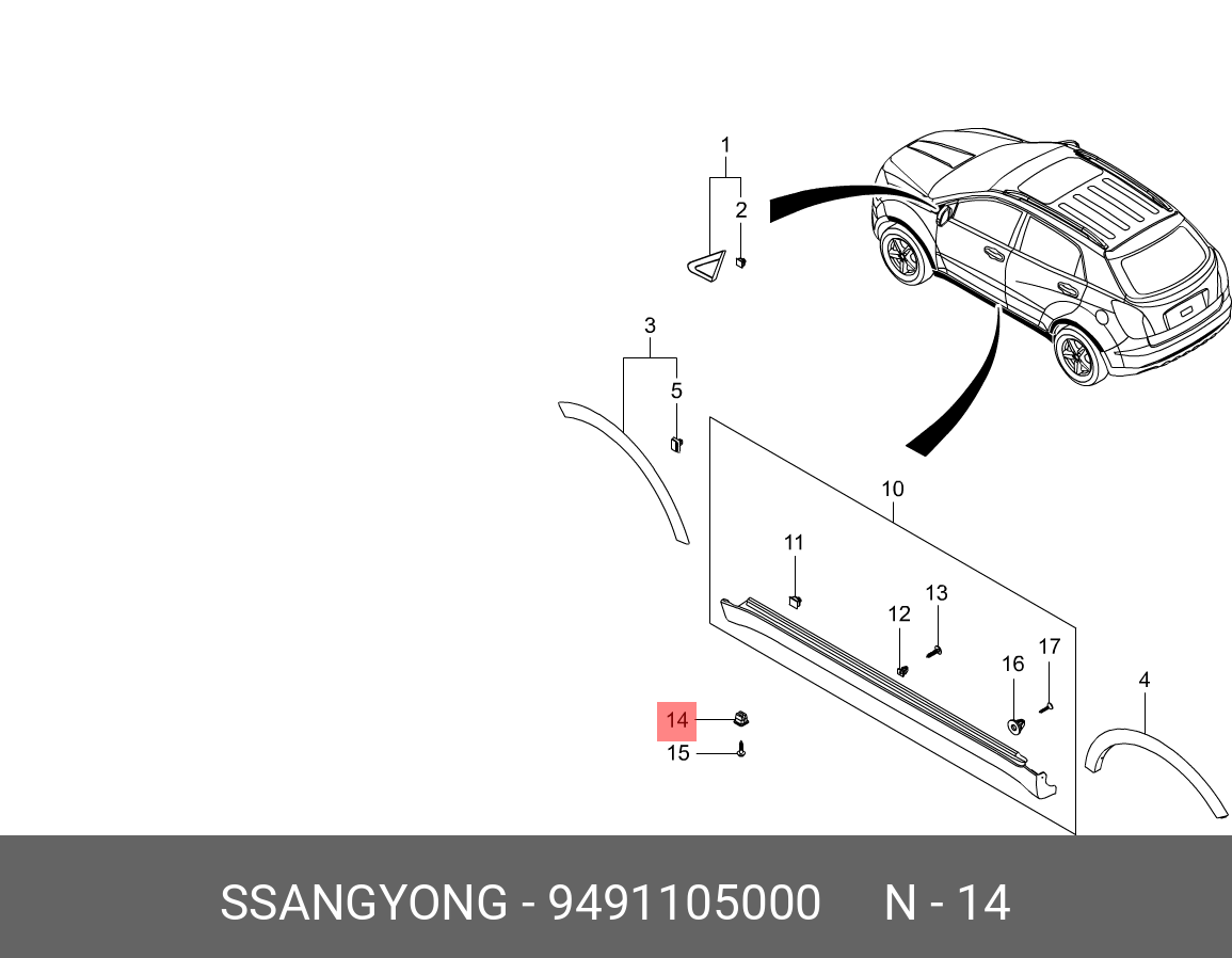 9491105000 SSANG YONG Пистон SSANGYONG Actyon (06-),Kyron (05-),Actyon Sports (12-),Rodius (04-) обшив