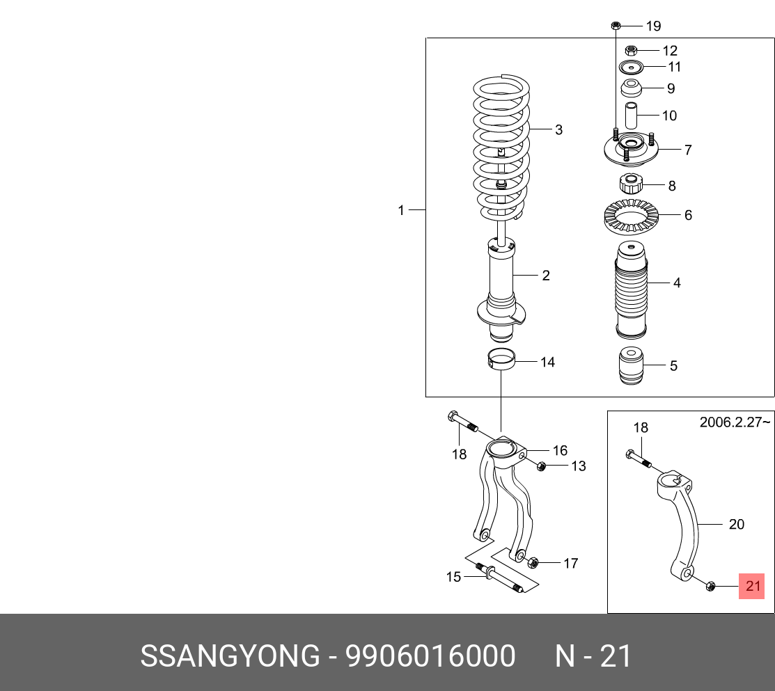 9906016000 SSANG YONG Гайка SSANGYONG Actyon (06-),Kyron (05-),Rexton (02-) кронштейна амортизатора OE
