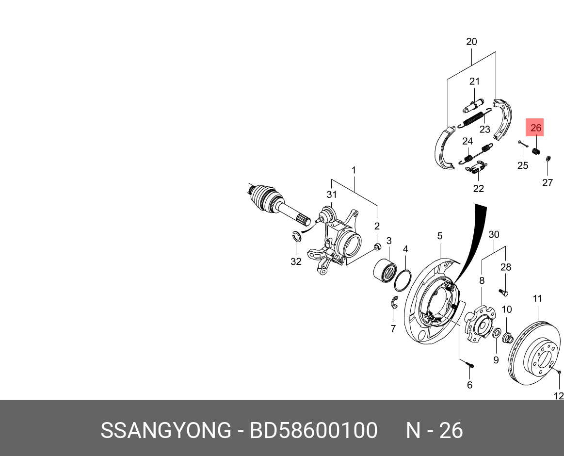 BD58600100 SSANG YONG Пружина SSANGYONG Kyron (05-),Rexton (06-) (multi-link) стоян. тормоза прижимная