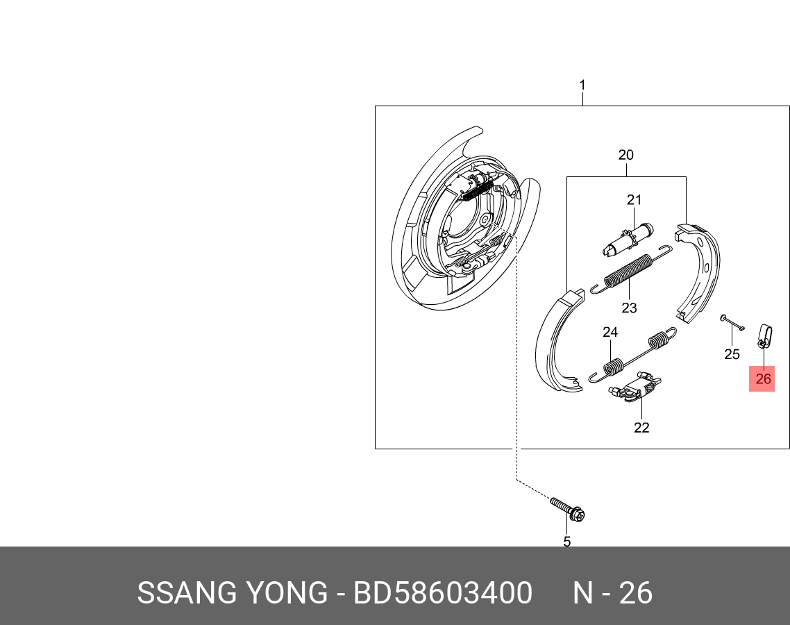 BD58603400 SSANG YONG Пружина SSANGYONG Actyon (10-) штифта колодок стояночного тормоза OE
