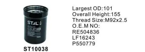 ST10038 STAL Фильтр масляный JOHN DEERE STAL