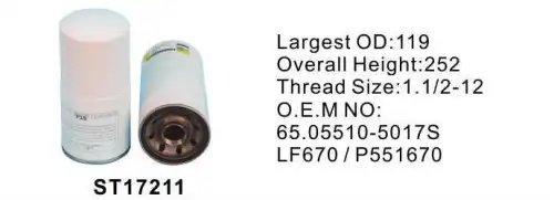 | Наименование | Фильтр масляный ST17211 STAL |