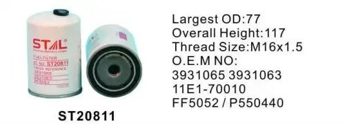 | Наименование | Фильтр топливный ST20811/ST20706/ST20501 |