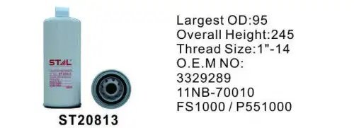 ST20813 STAL Фильтр топливный CASE 9050B,9060B (дв.CUMMINS) STAL