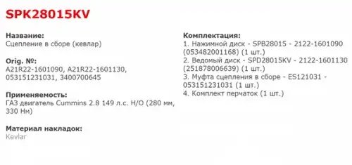 | Наименование | Сцепление ГАЗ-3302 Бизнес дв.CUMMINS ISF 2.8 ЕВРО-4 КПП Н/О в сборе (усиленное к |