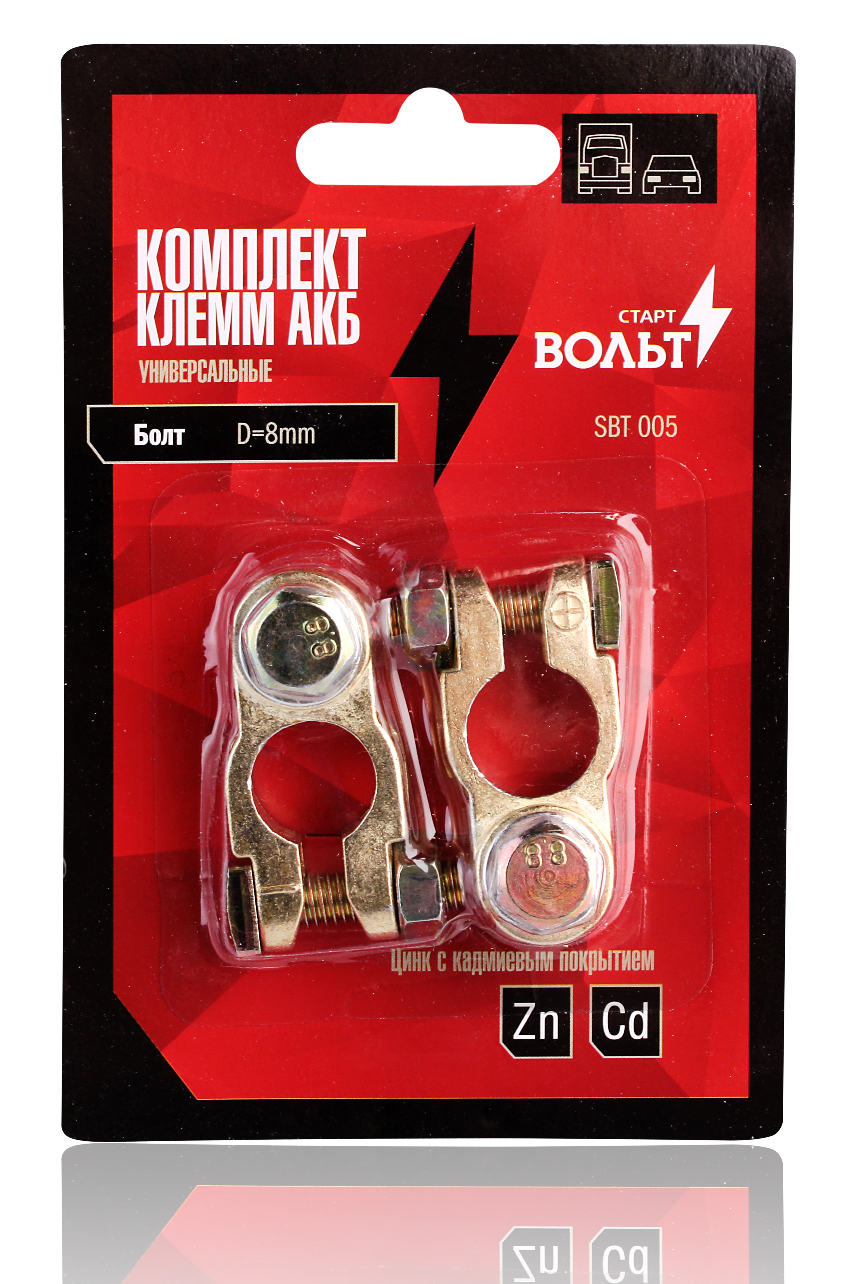 SBT 005 START VOLT Клемма АКБ в комплекте медь, винт и гайка 8мм (СтартВОЛЬТ)