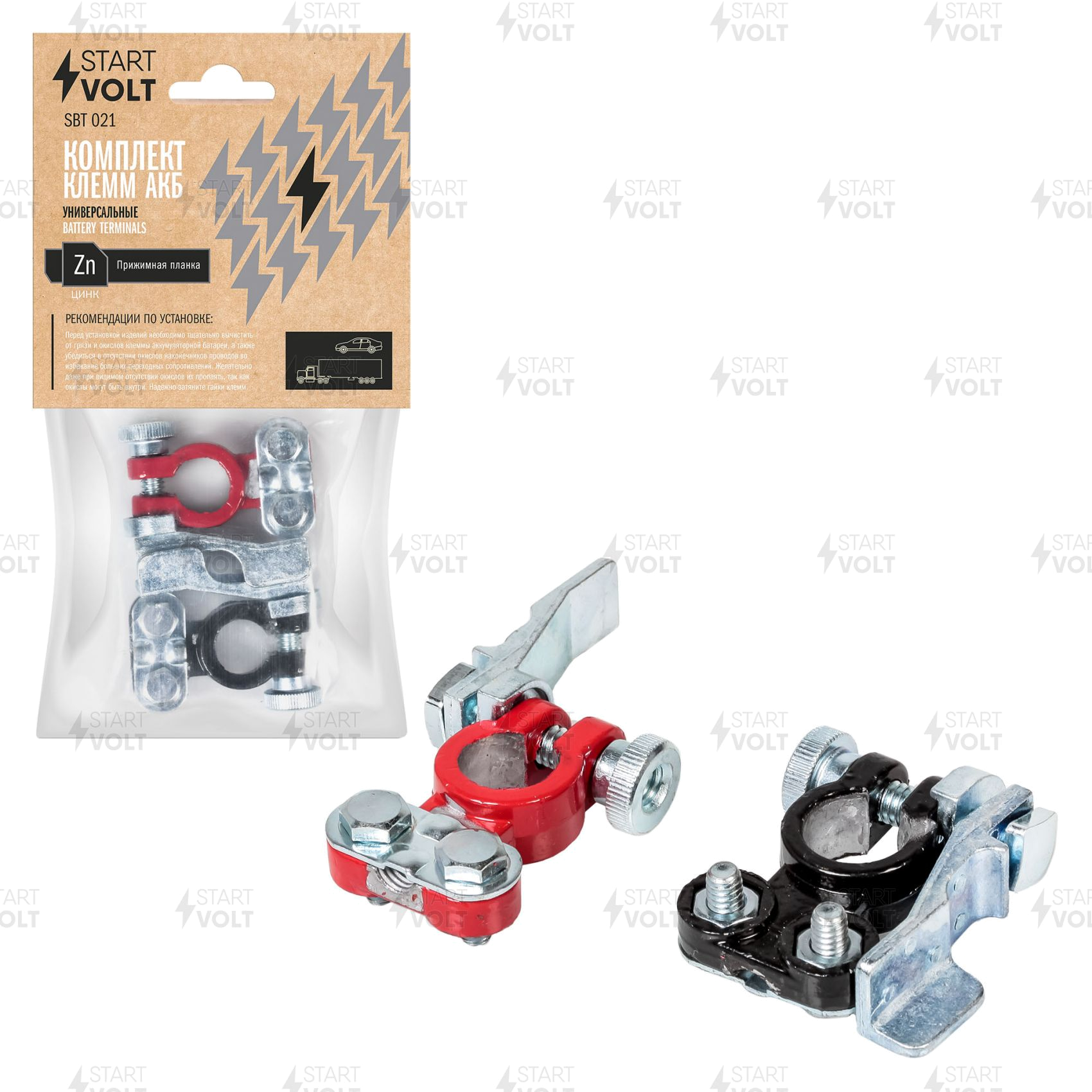 SBT 021 START VOLT Клеммы АКБ в комплекте цинк с покрытием, прижимная планка (SBT 021)