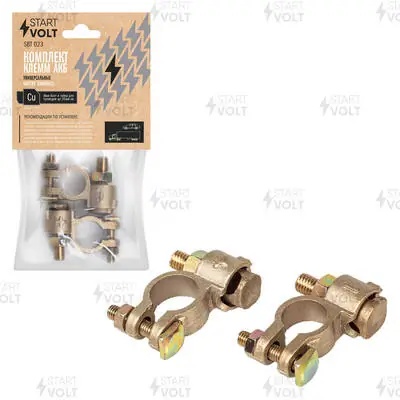 SBT023 START VOLT Клеммы АКБ в комплекте латунь, 8мм болт и гайка для проводов до 35мм кв.(SBT 023