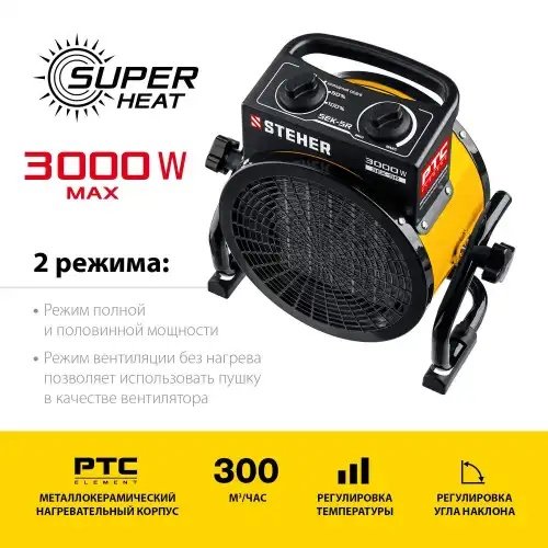 SEK5R STEHER Пушка тепловая 3.0кВт 300куб.м/ч керамическая электрическая STEHER