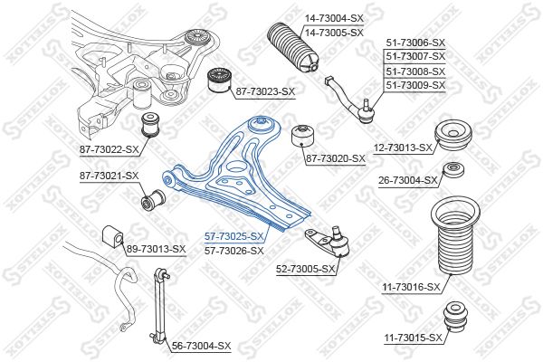 57-73025-SX STELLOX рычаг левый!\ Daewoo Kalos 02>