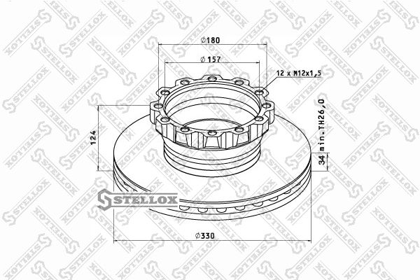 85-00711-SX STELLOX диск тормозной !330/157x34/124 12n-180-M12x1.5 \MAN L2000 9/10.224