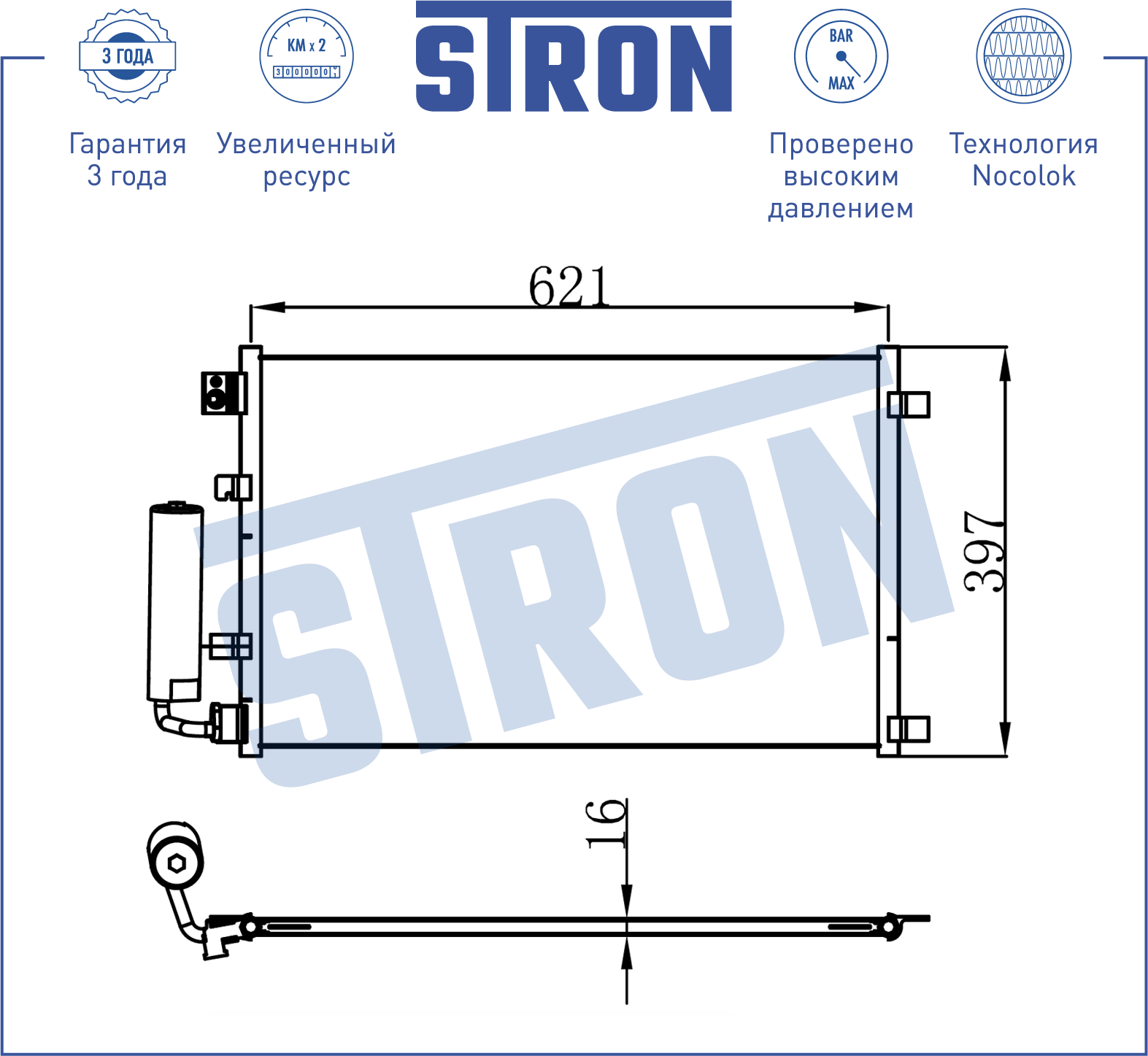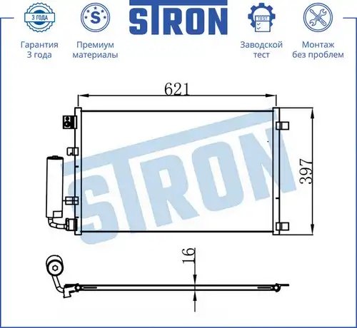 STC0032 STRON Радиатор кондиционера (Гарантия 3 года, Увеличенный ресурс) STC0032