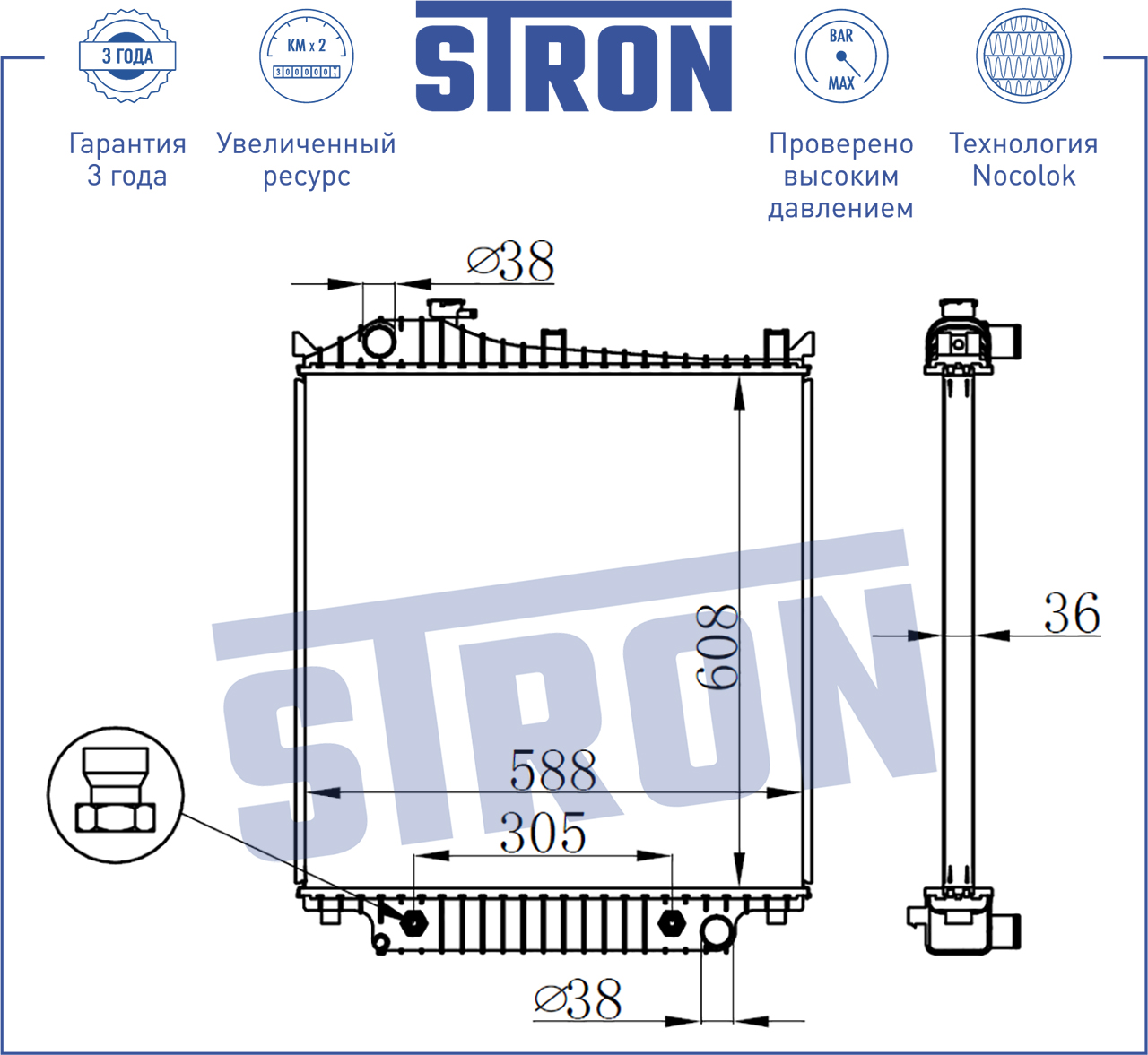 | Наименование | Радиатор двигателя STRON |