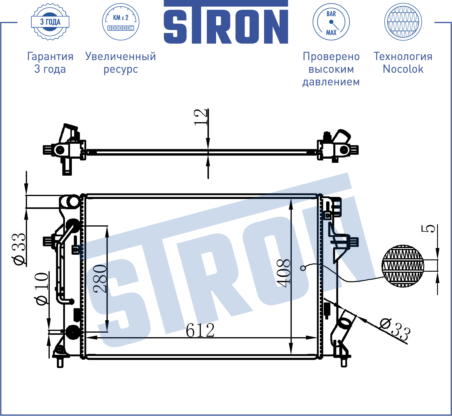 STR0436 STRON Радиатор двигателя (Гарантия 3 года, Увеличенный ресурс) STR0436