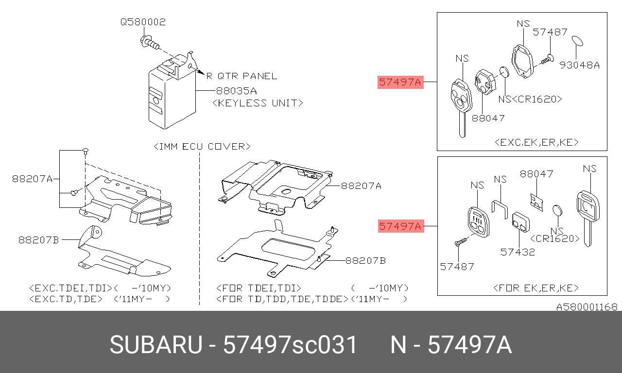 57497SC031 SUBARU ЗАГОТОВКА КЛЮЧА \
