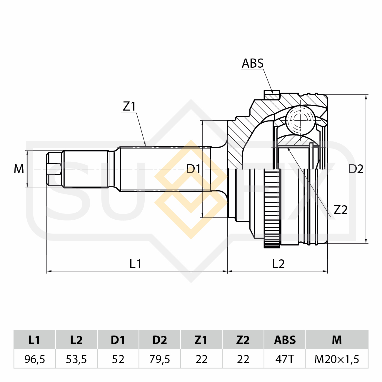 ST-1014 SUFIX ШРУС наружный CHEVROLET Aveo 1.4 03-08/Kalos 1.4 05, DAEWOO Kalos 1.4 03 ST-101