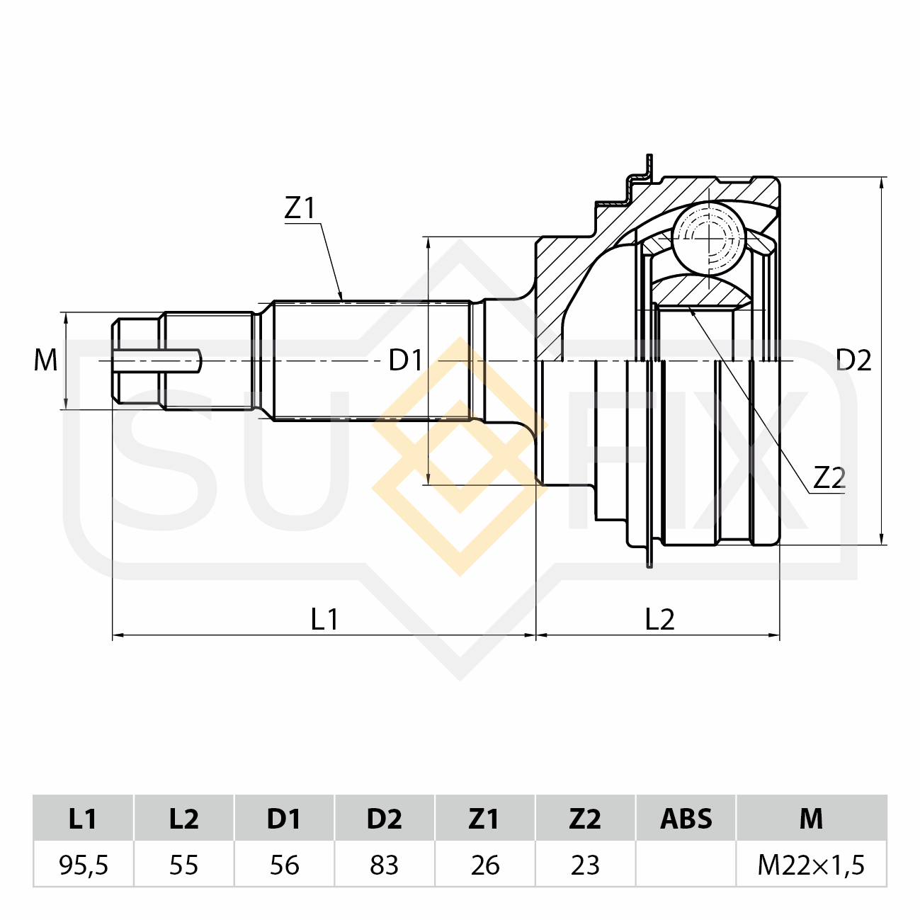 ST-1101 SUFIX ШРУС наружный TOYOTA Caldina 1.8 92-02/Carina 1.6-2.0D 92-97/Starlet 1.3 96-99 S