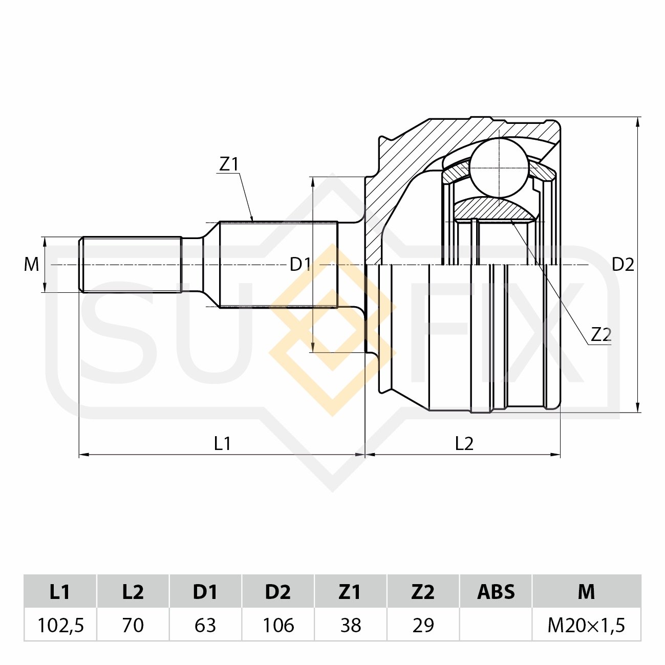 ST-1114 SUFIX ШРУС наружный VW Transporter 5 2.0D-3.2 03 ST-1114