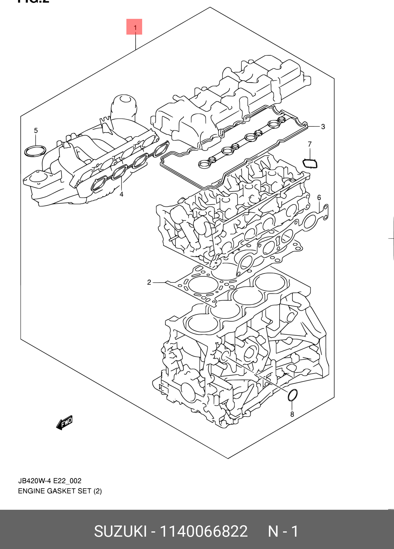1140066822 SUZUKI Комплект прокладок ДВС 2,4 G.V. new. 11400-66822