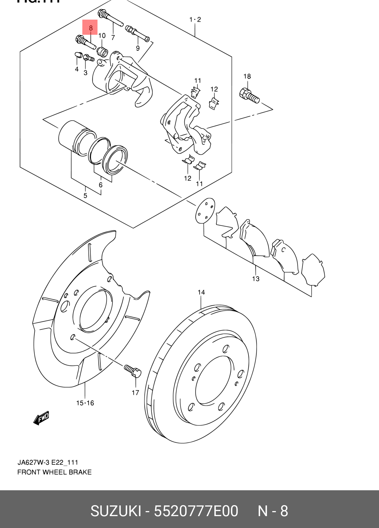 55207-77E00 SUZUKI Направляющая суппорта SUZUKI GRAND VITARA/VITARA переднего нихняя