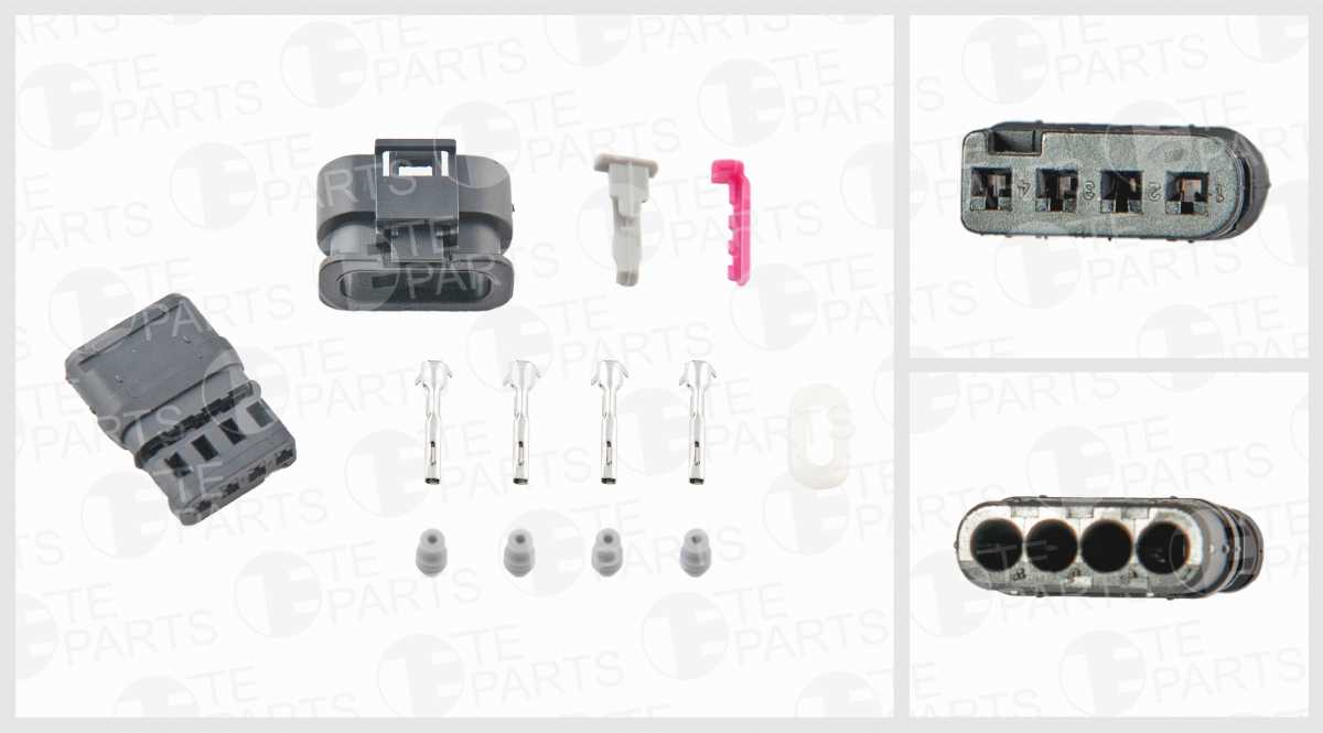 7740465 TE PARTS Разъём 4х контактный К-тация: 4-pin, 4 уплотнения, 2 фиксатора