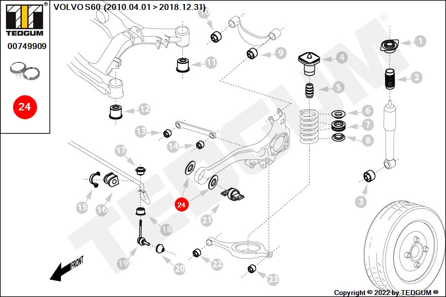 00749909 TEDGUM Ремкомплект поперечного рычага 00749909