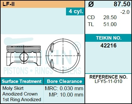 42216050 TEIKIN Поршень двигателя без колец (4 поршня) 422160.50