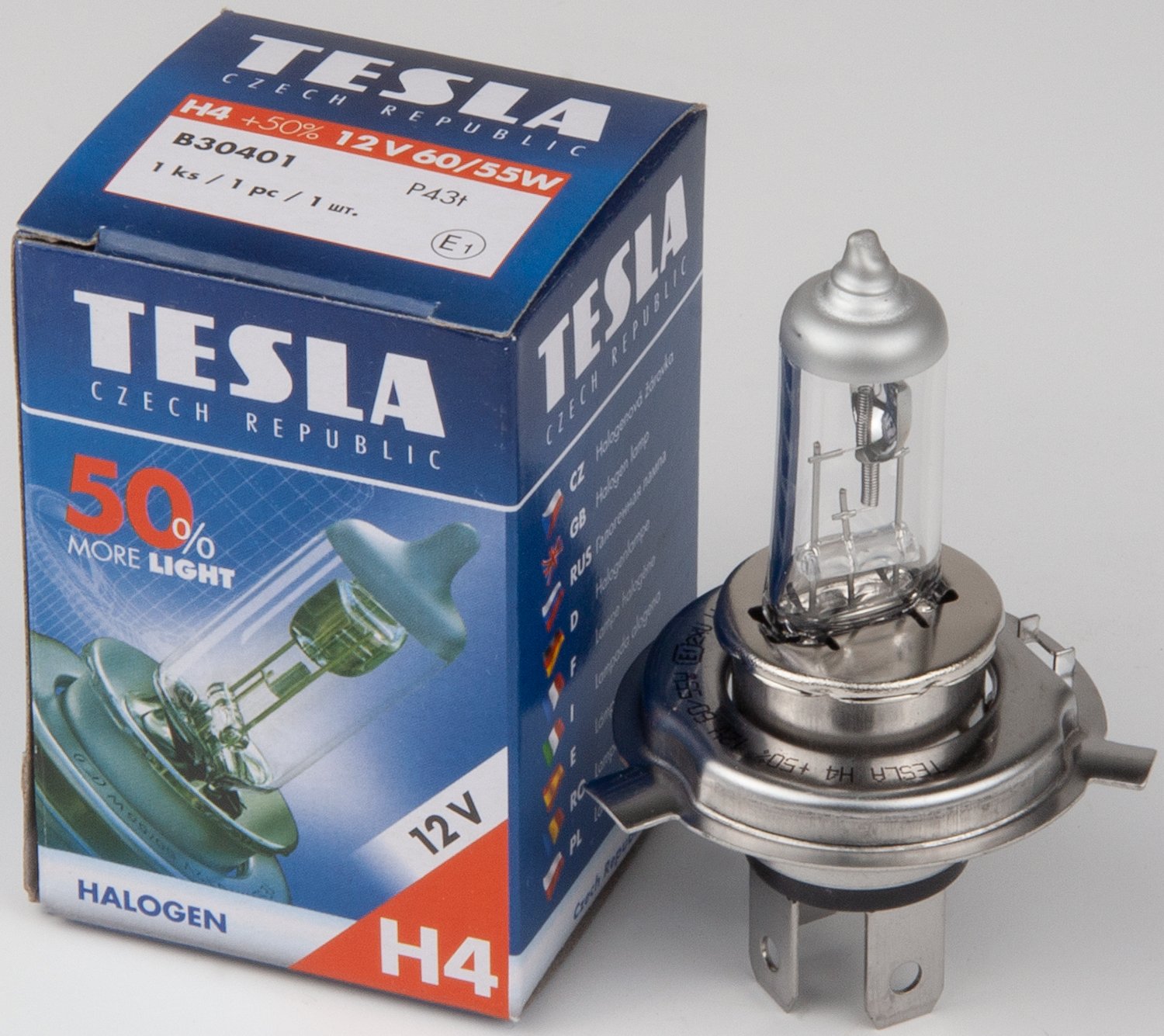 B30401 TESLA лампа! H4, 12V, 60/55W, P43t +50% мощности света галогенная\