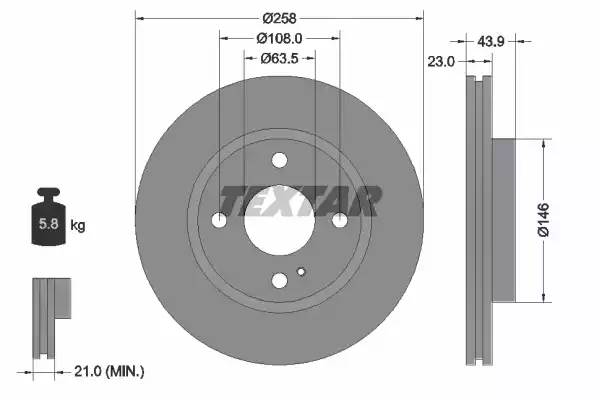 92176005 TEXTAR 92176005 диск тормозной передний!\ Ford Fiesta 1.25-1.8TDCi 08>