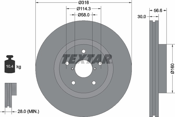 92199203 TEXTAR 92199203 диск тормозной передний!\ Subaru Tribeca 3.0/3.6i 05>