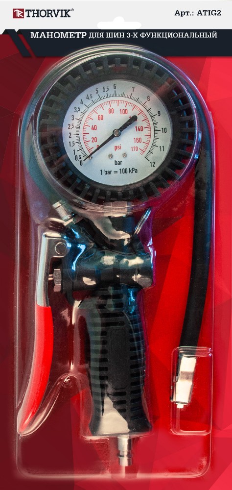 | Дополнительная информация | Пистолет для подкачки шин THORVIK с манометром и шлангом. Подходит для подкачки шин легковых и грузовых автомобилей. |