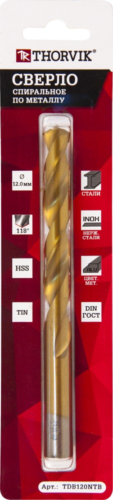 TDB032NTB THORVIK Сверло по металлу 3.2х65мм HSS Titanium THORVIK