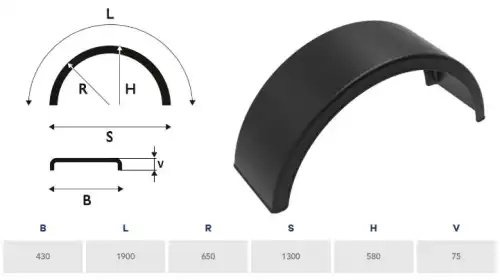 | Наименование | Крыло односкатное 430x580/R650x1300(1900) (аналог DK1675 Domar) под колеса 385/6 |