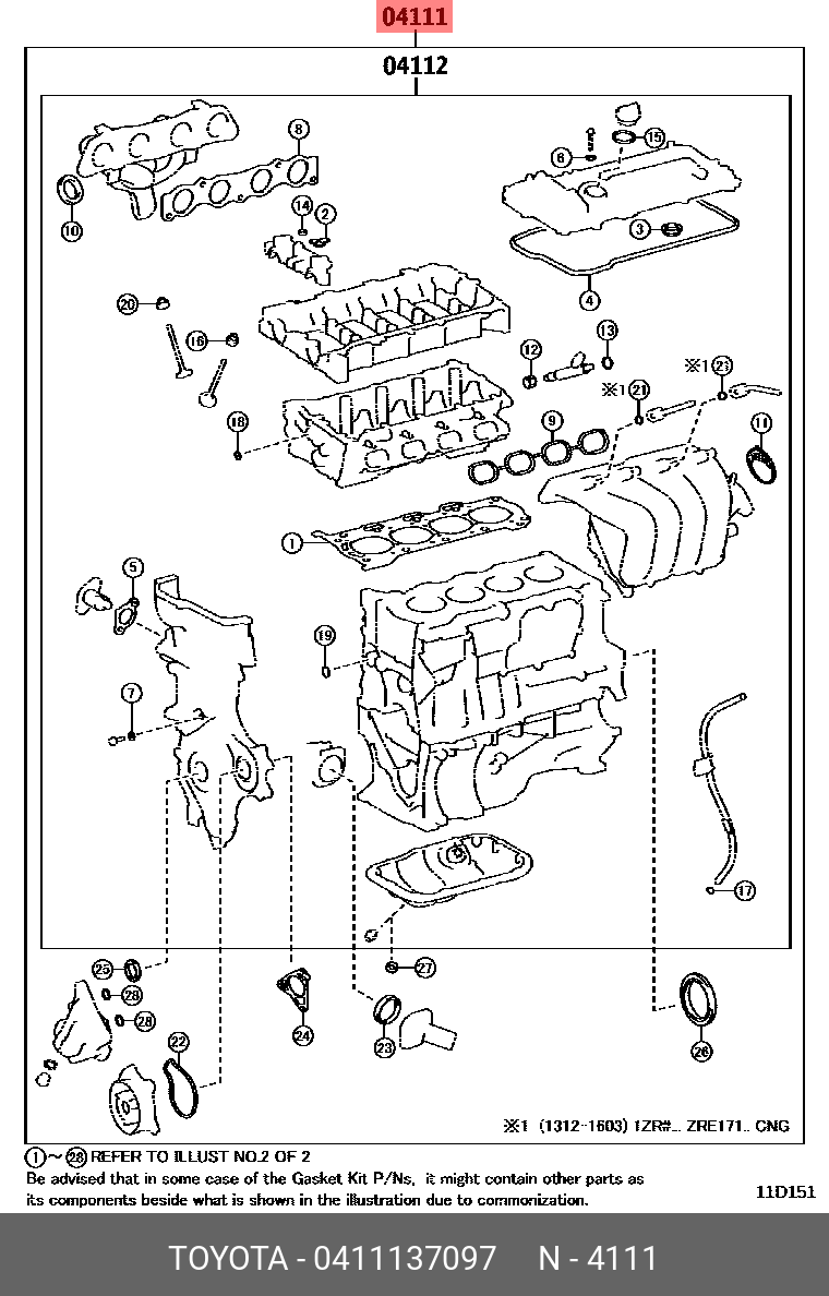 04111-37097 TOYOTA Ремкоплект двигателя TOYOTA COROLLA,AURIS 1ZRFE 08- 04111-37097