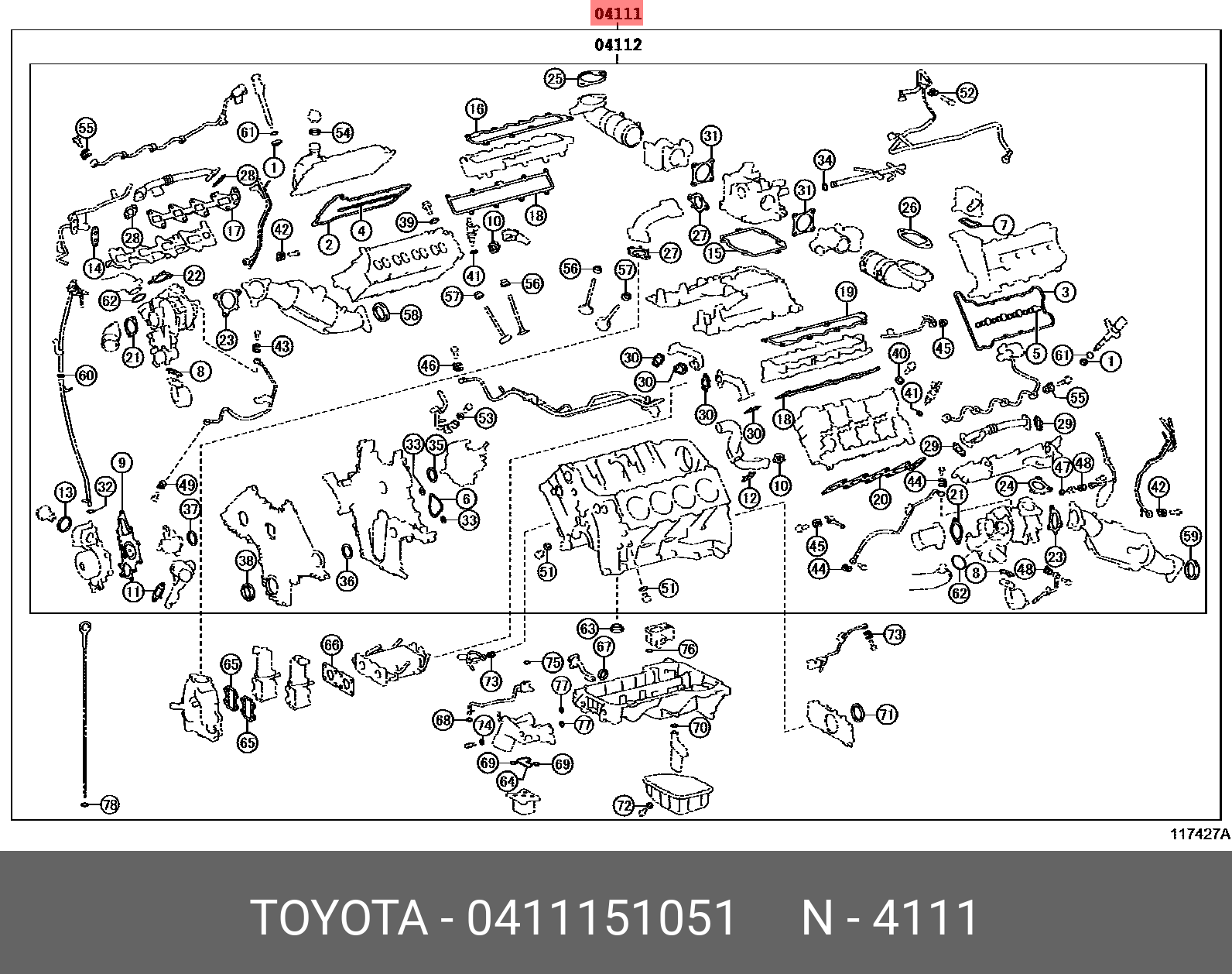 04111-51051 TOYOTA К-Т ПРОКЛАДОК ДВИГАТЕЛЯ 04111-51051
