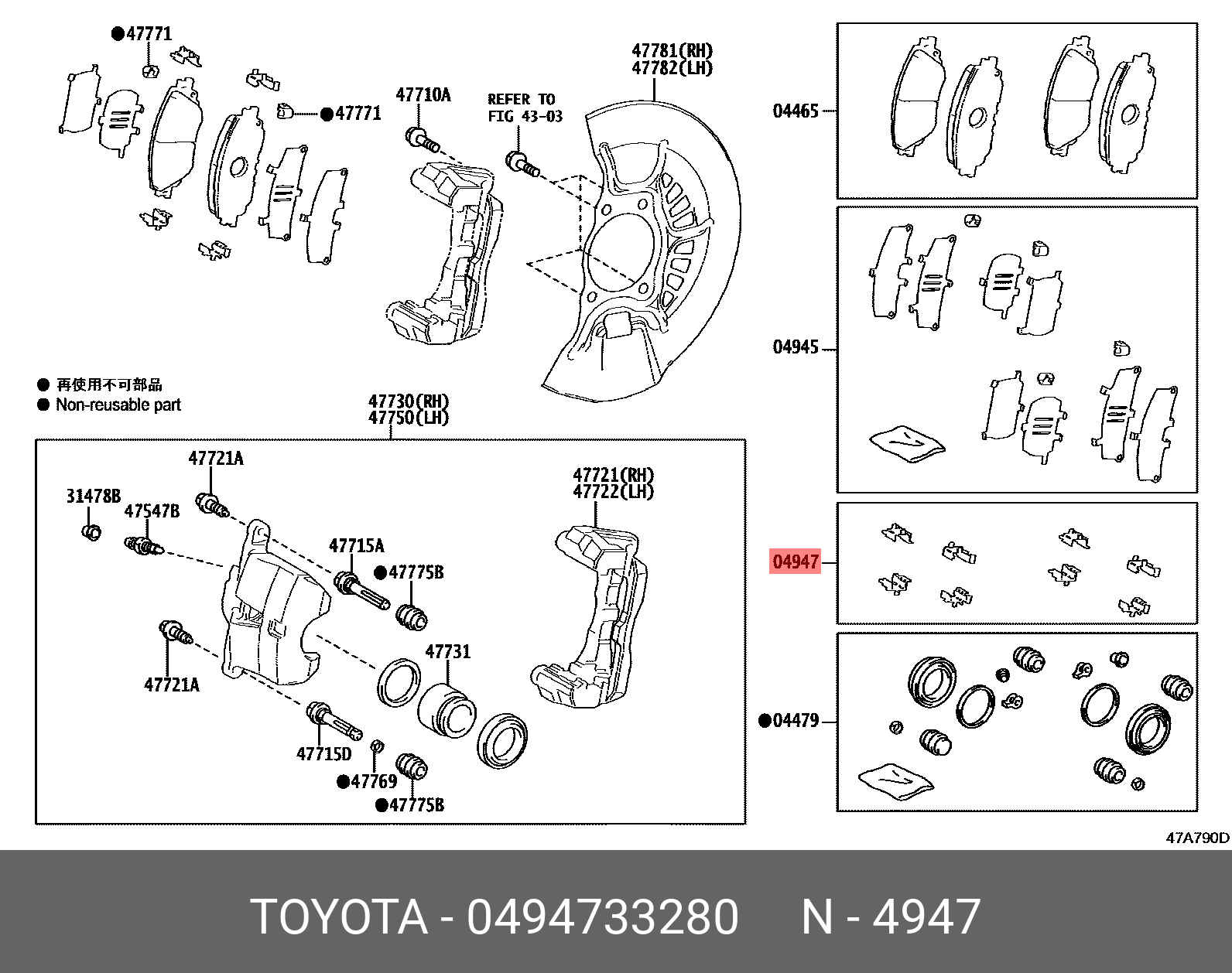 04947-33280 TOYOTA К-Т КРЕПЕЖА ТОРМ.КОЛОДОК 04947-11010
