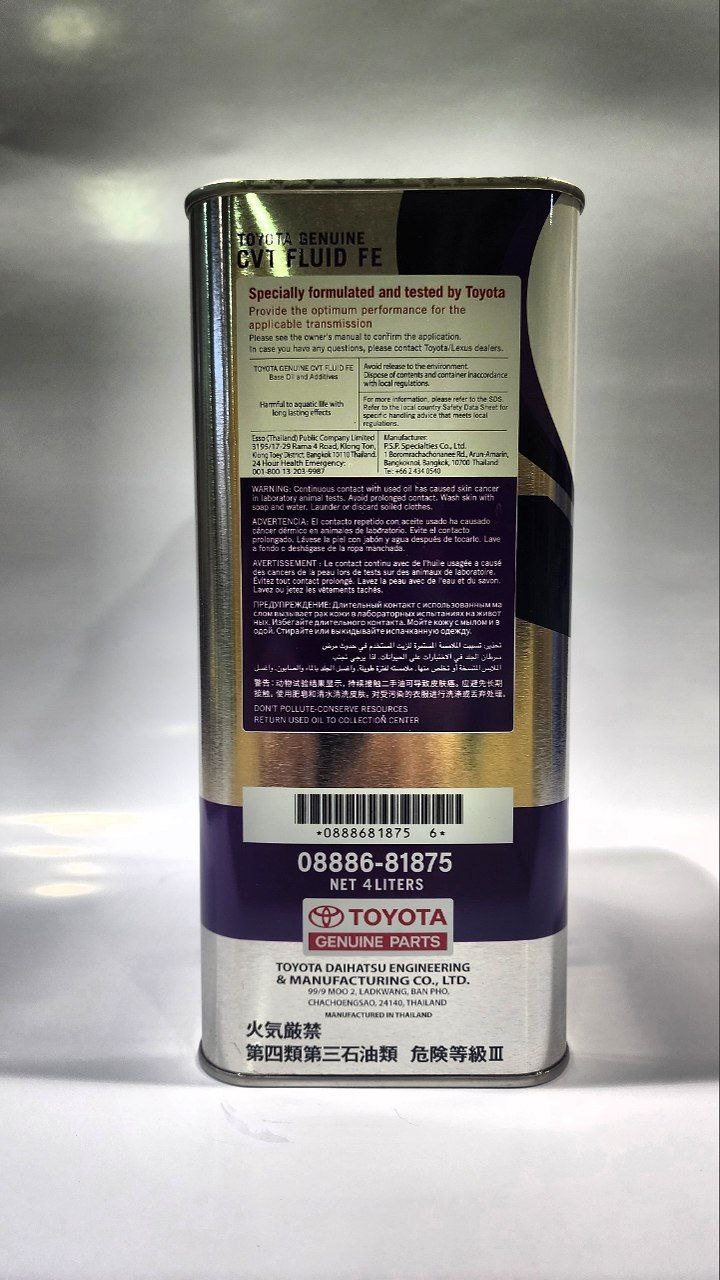 | Наименование | Масло трансмиссионное CVT FE 4л, Toyota 0888681875 |