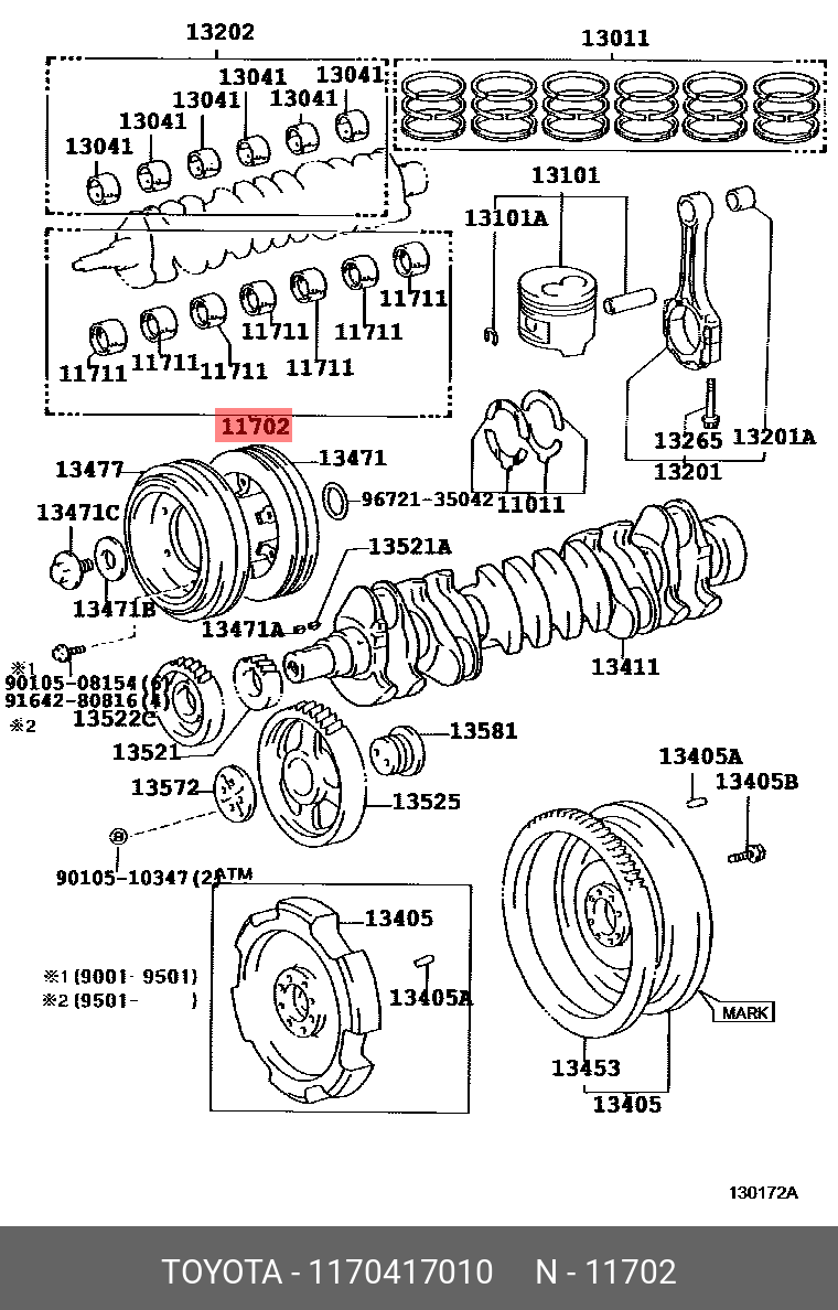 11704-17010 TOYOTA НАБОР КОРЕННЫХ ВКЛАДЫШЕЙ 11704-17010